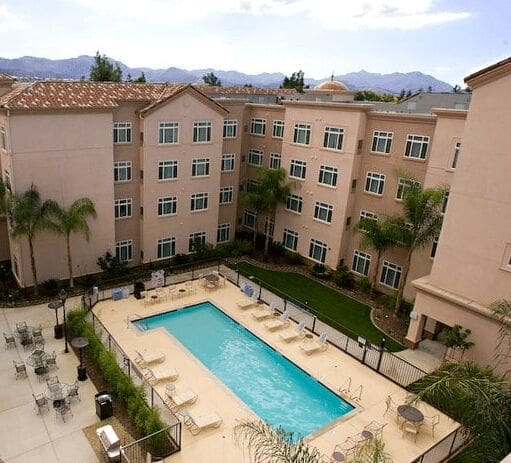 Pros: Nice, new, clean. Free buffet breakfast (with a good selection of healthy options…not that I would know anything about that). Nice lounge area: pool table, comfy chairs, flat screen televisions. One bedroom suites are nice (bedroom is dinkiy….the king size barely fits the room), nice kitchen and living room. Nice outdoor area : pool, Jacuzzi, and bbq area