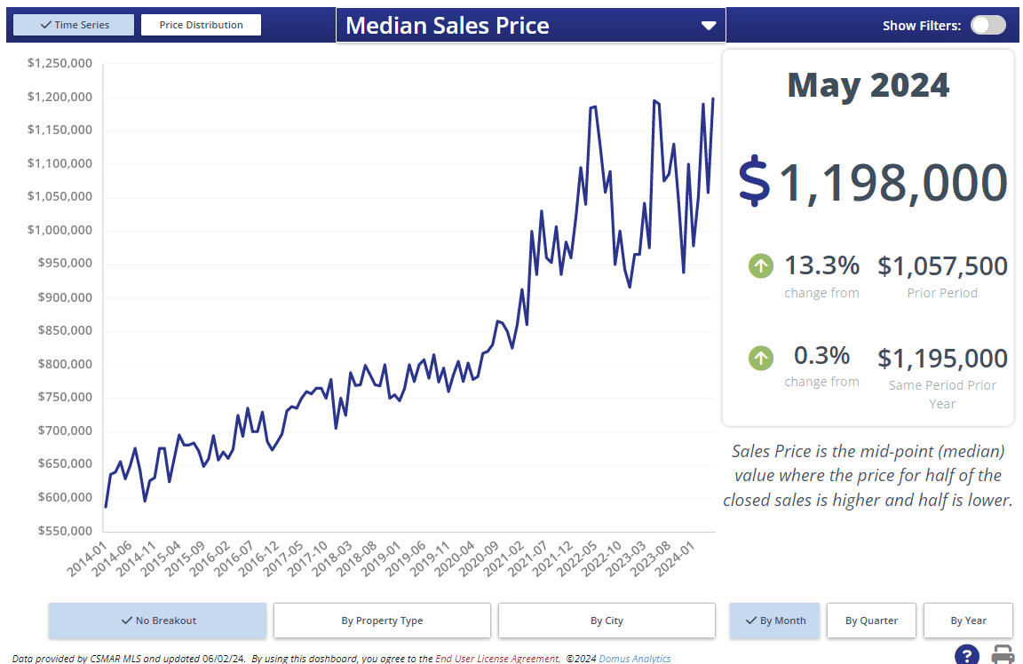 • The median price of a Conejo Valley home was up in May to $1,198,000.