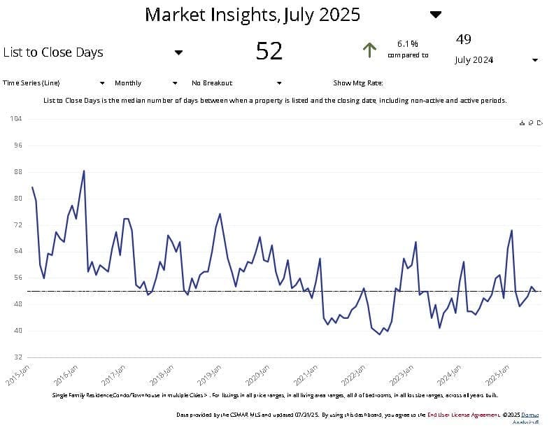- Homes are taking longer to sell – 52 days on average