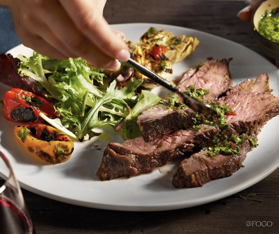 “The restaurant features an open churrasco grill where guests can dine and watch gaucho chefs demonstrate the culinary art of churrasco as they butcher, prepare and grill different cuts of meat over an open flame.”