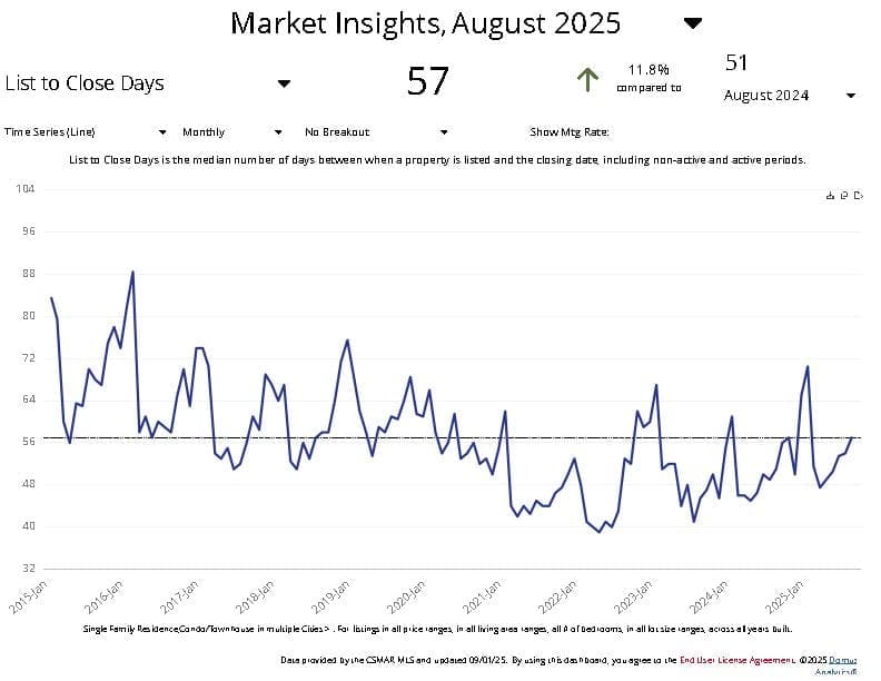 - Homes are taking longer to sell – 57 days on average