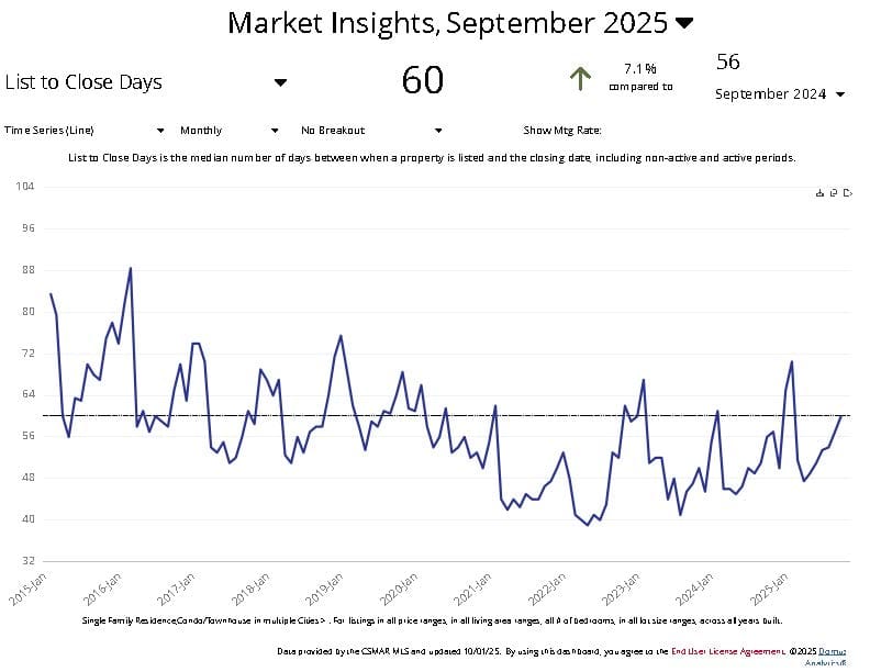 - Homes are taking longer to sell – 60 days on average