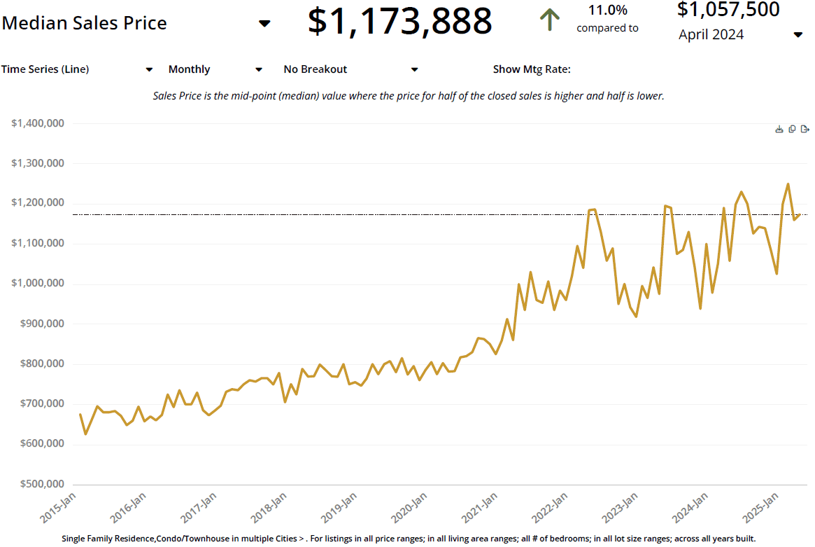 → Median home price: $1,173,888 - Mortgage rates ended April at 6.7% – down from 7% last year